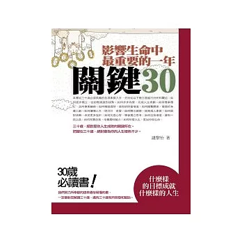歡迎到博客來購買:影響生命中最重要的一年:關鍵30